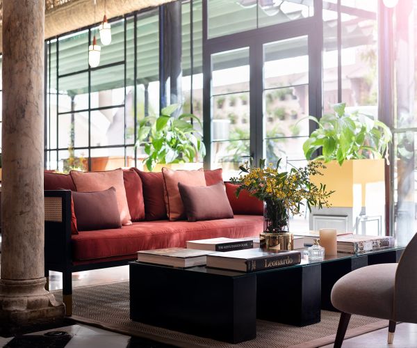 El corazón del hotel es su patio sevillano con naranjos, un espacio lleno de calma y belleza que conserva la esencia de las casas palaciegas de la ciudad. A su alrededor se suceden espacios con personalidad propia, como el lobby bar, que integra un elegante sherry bar, celebración viva de la cultura vinícola del sur.