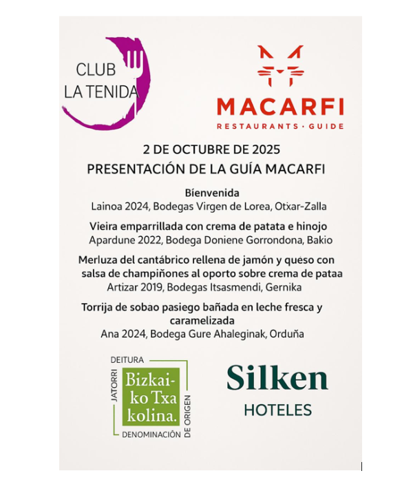 El acto contará con la participación de Manuel Carreras, presidente y fundador de la Guía Macarfi, y del prestigioso chef Álvaro Garrido, del restaurante Mina (Bilbao), galardonado con una estrella Michelin. Ambos mantendrán una conversación en la que abordarán la filosofía y los criterios que sustentan la Guía Macarfi, presentarán el Club Macarfi como comunidad de apasionados gastronómicos, y reflexionarán sobre la evolución de la alta cocina y los retos actuales del sector desde sus respectivas trayectorias.