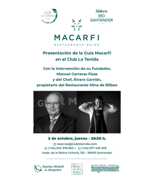 El acto contará con la participación de Manuel Carreras, presidente y fundador de la Guía Macarfi, y del prestigioso chef Álvaro Garrido, del restaurante Mina (Bilbao), galardonado con una estrella Michelin. Ambos mantendrán una conversación en la que abordarán la filosofía y los criterios que sustentan la Guía Macarfi, presentarán el Club Macarfi como comunidad de apasionados gastronómicos, y reflexionarán sobre la evolución de la alta cocina y los retos actuales del sector desde sus respectivas trayectorias.